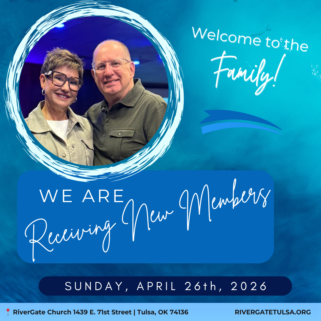 We will publicly recognize our new members on Sunday, April 26th in the 10:30am service. If you have taken the Next Steps class and have not been publicly received into membership, we invite you to do this with us. If you would like to become a member or learn more about the church, we invite you to take the Next Steps class (15-20min) immediately following service. For more info, please contact us at pastors.assistant@rivergatetulsa.org or 918-492-5511×23.