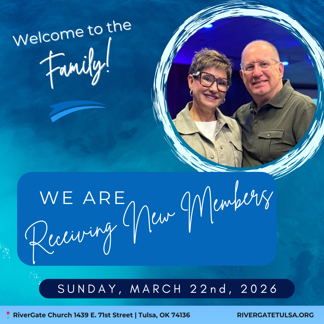We will publicly recognize our new members on Sunday, February 15th in the 10:30am service. If you have taken the Next Steps class and have not been publicly received into membership, we invite you to do this with us. If you would like to become a member or learn more about the church, we invite you to take the Next Steps class (15-20min) immediately following service. For more info, please contact us at pastors.assistant@rivergatetulsa.org or 918-492-5511×23.